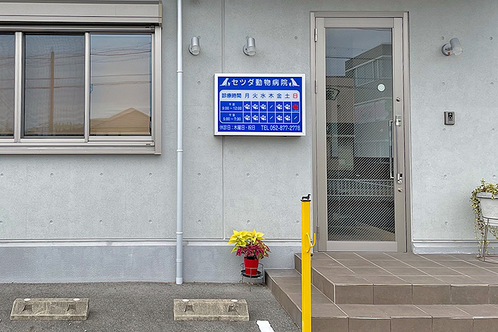 MAP 電話をする 公式サイト 愛知県名古屋市緑区乗鞍2-1714 052-877-2778 犬、猫 午前9:00〜12:00 午後5:00〜7:00※ 日曜日は 午前9:00〜11:00 まで 月火水木金土日祝 AM9:00-12:00●●●−●●▲− PM5:00-7:00●●●−●●−− 日曜日午後、木曜日、祝日